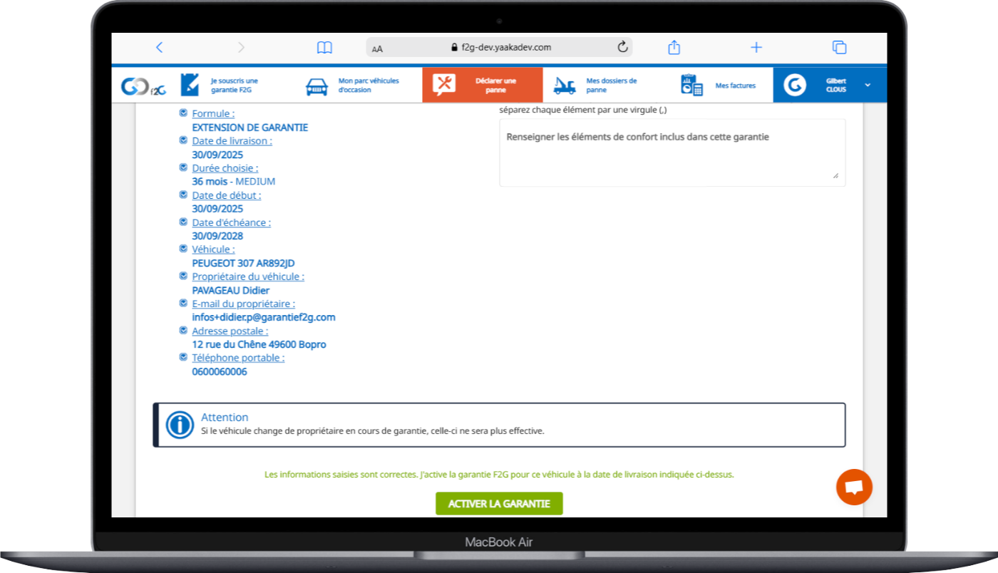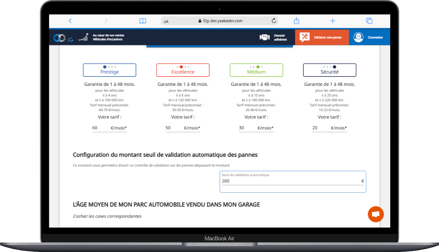 (F2G fourni des tarifs à titre indicatif) - Définissez votre montant seuil de validation automatique des pannes, quand elles sont traitées par un garage réceptionnaire